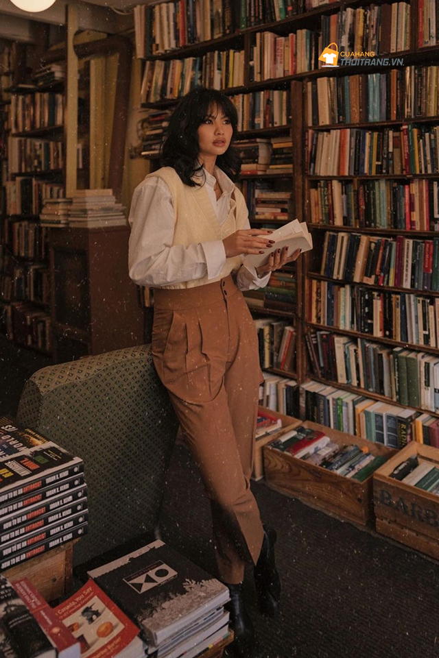 Bên cạnh áo len cổ lọ, sweater, áo trench coat. Bạn có thể tận dụng lại chiếc áo sơ mi bằng voan, áo gilê, quần short cạp cao. Hay thâm chí cả áo cardigan để biến hóa theo phong cách thời trang đầy bí ẩn này.
